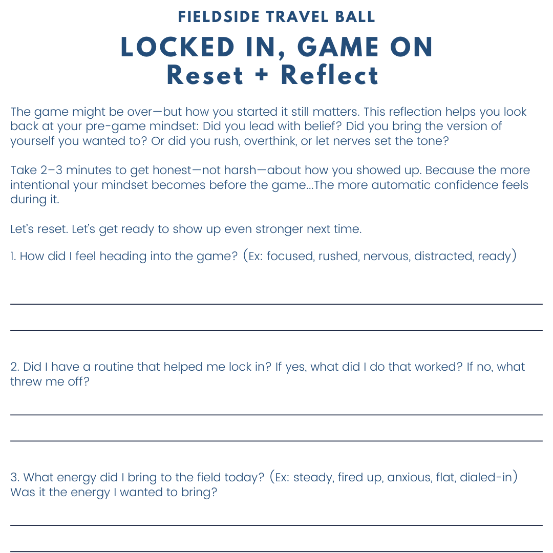 This tool helps players shift from “I hope I’m ready” to “I am ready.” It reinforces the belief that they’ve done the work, they can trust themselves, and they’re in control of how they show up—no matter the scoreboard.